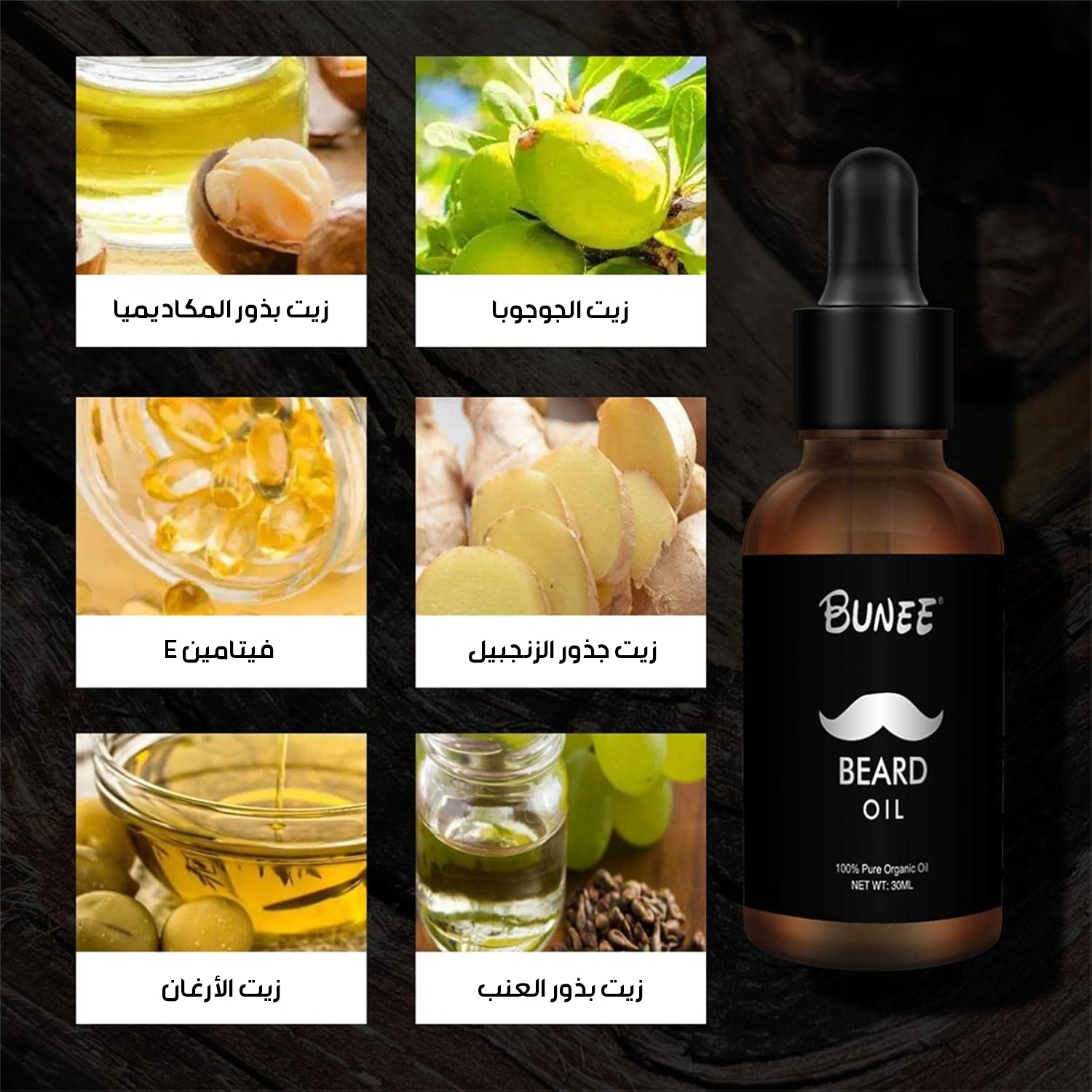 لحيتك هي عنوان رجولتك وأناقتك، مع زيت BUNEE الفاخر، لن تحصل على مجرد لحية، بل ستمتلك مظهراً يزيد من ثقتك بنفسك ويبرز جاذبيتك، تركيبتنا الفريدة صُممت خصيصاً للرجل العصري الذي يبحث عن التميز، كن أنت الأفضل، وامنح لحيتك العناية التي تستحقها.