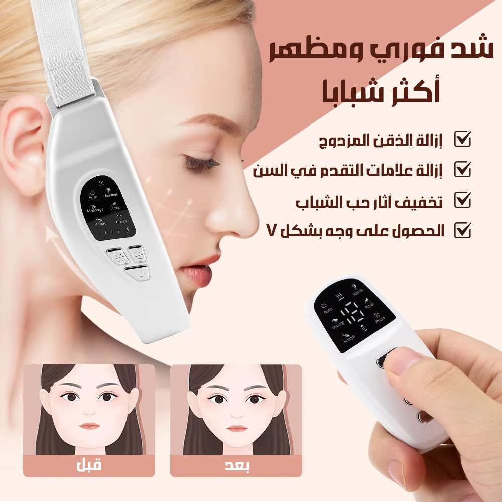 مظهر الذقن المزدوج أو البشرة المترهلة قد يؤثر على ثقتك بنفسك ويجعلك تبدين أكبر سناً، الحلول التقليدية مثل التمارين الصعبة لا تأتي بنتائج سريعة، بينما الحلول الطبية مكلفة ومؤلمة. لهذا السبب، صممنا لكِ الحل الأمثل الذي يمنحكِ نتائج احترافية بكل سهولة وأمان.