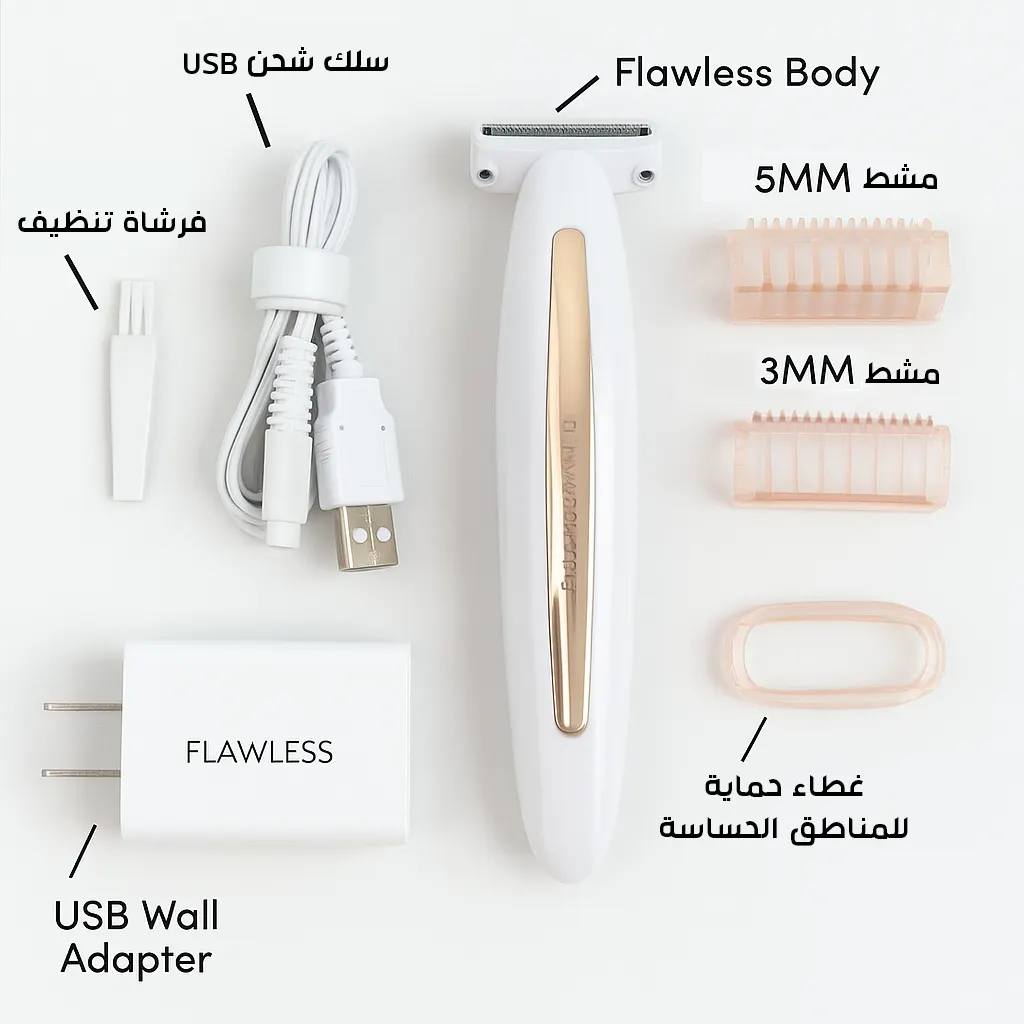 خلاص، قولي وداعا لألم الشمع وشفرات الحلاقة اللي تجرح وتسبب تهيج! ماكينة Flawless Body هي الحل السحري عشان تاخذي بشرة ناعمة ومثالية في ثواني، وبدون أي ألم أو خدوش.