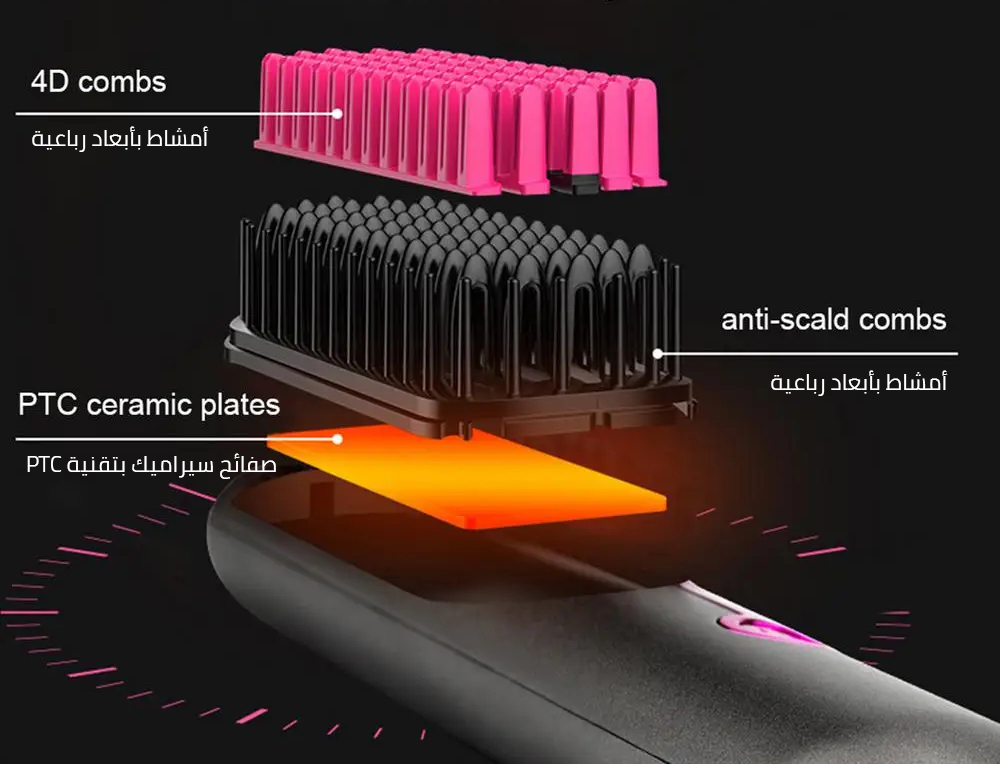 لم يعد الحصول على شعر ناعم، لامع، ومفعم بالحيوية حلما صعب المنال! اكتشفي فرشاة تصفيف الشعر اللاسلكية الاحترافية والثورية المصممة لتمنحك إطلالة جميلة في دقائق معدودة، دون قيود الأسلاك المزعجة.